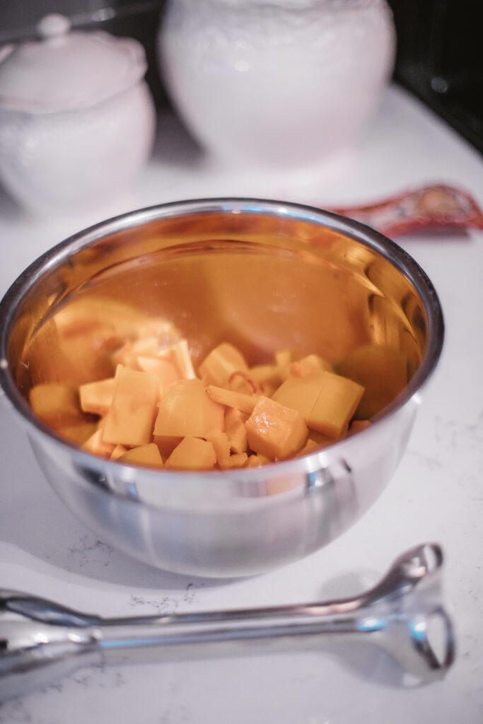 - Cut the squash into 1-1.5 inch cubes