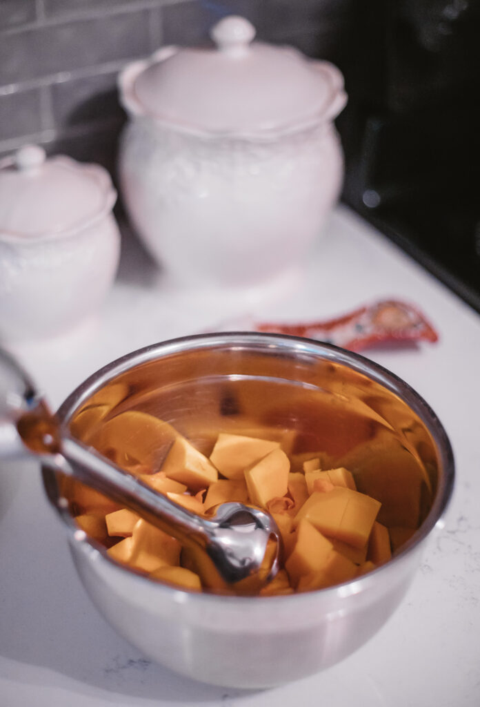 First things first, you will need butternut squash puree. I made my own for this recipe, but you can of course buy it premade as well and save yourself these steps!