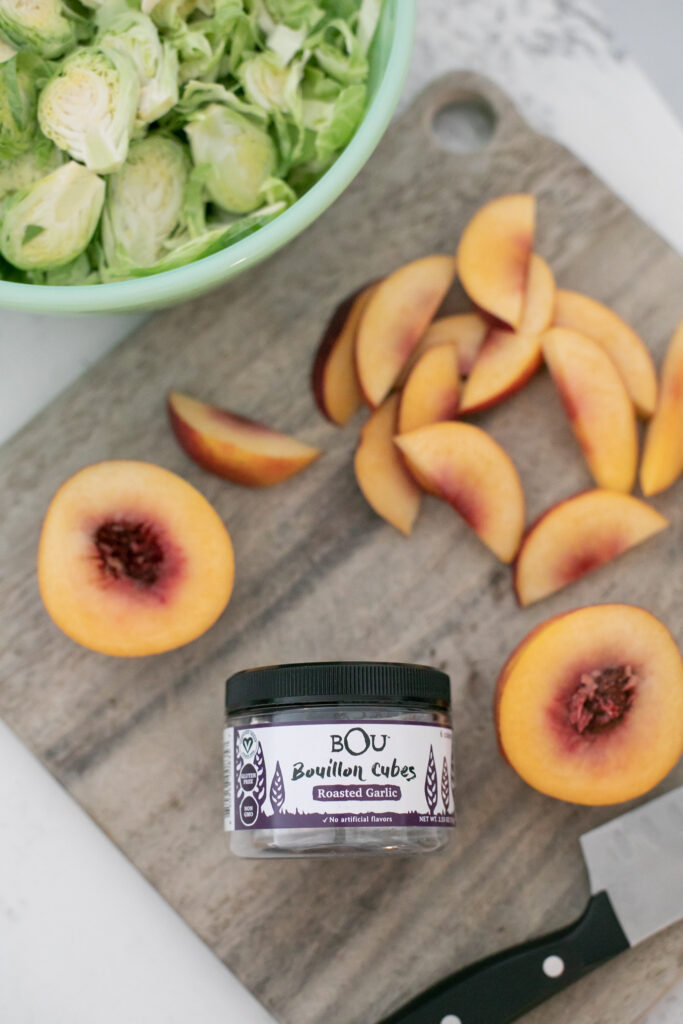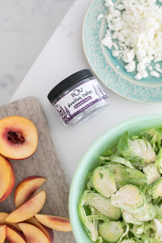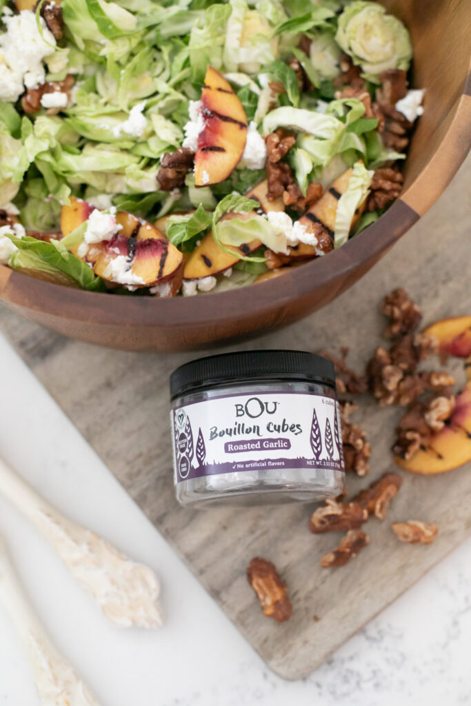 I was so excited for the opportunity to create this Summer Shaved Brussels Sprouts & Nectarine Salad for BOU, a bouillon company. I love to cook, but I rarely follow a recipe when I do. I like to kind of just go with what feels right lol, and think everyone should cook that way! This healthy summer recipe is so simple to throw together, but also lends itself easily to modifications if you want to add or remove something so that the recipe suits you better.