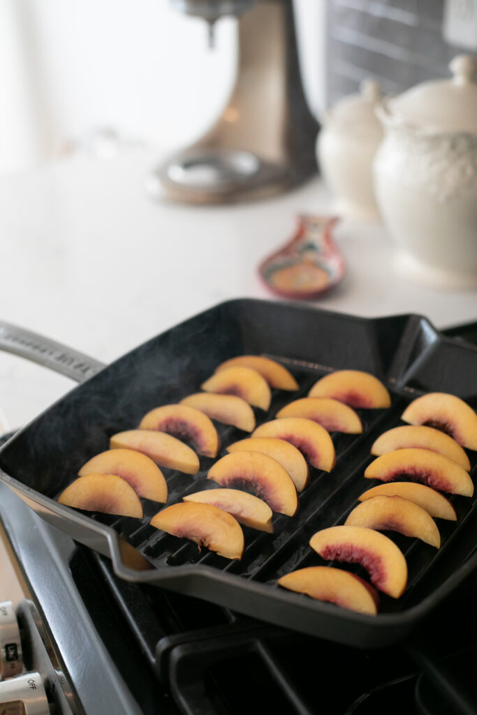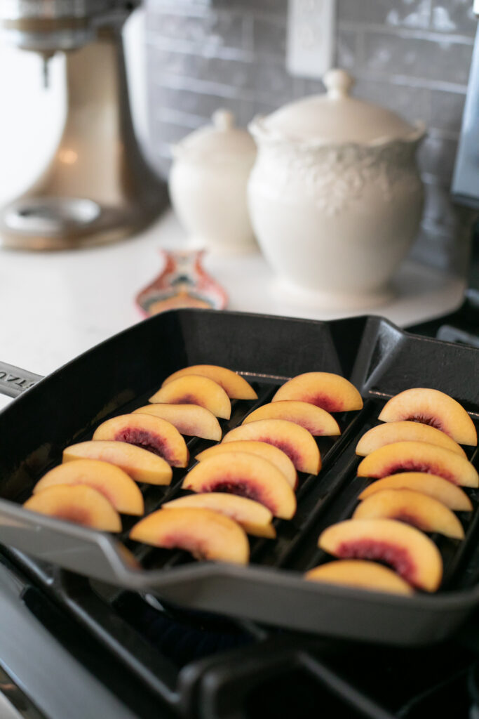 We live in a condo so aren’t allowed to have a grill, but this grill pan makes it so easy to grill right on the stove! I love the nice grill marks it makes on the nectarines, and the taste and texture is so much better than roasted in my opinion. Plus it makes it just feel extra summery when they are grilled.