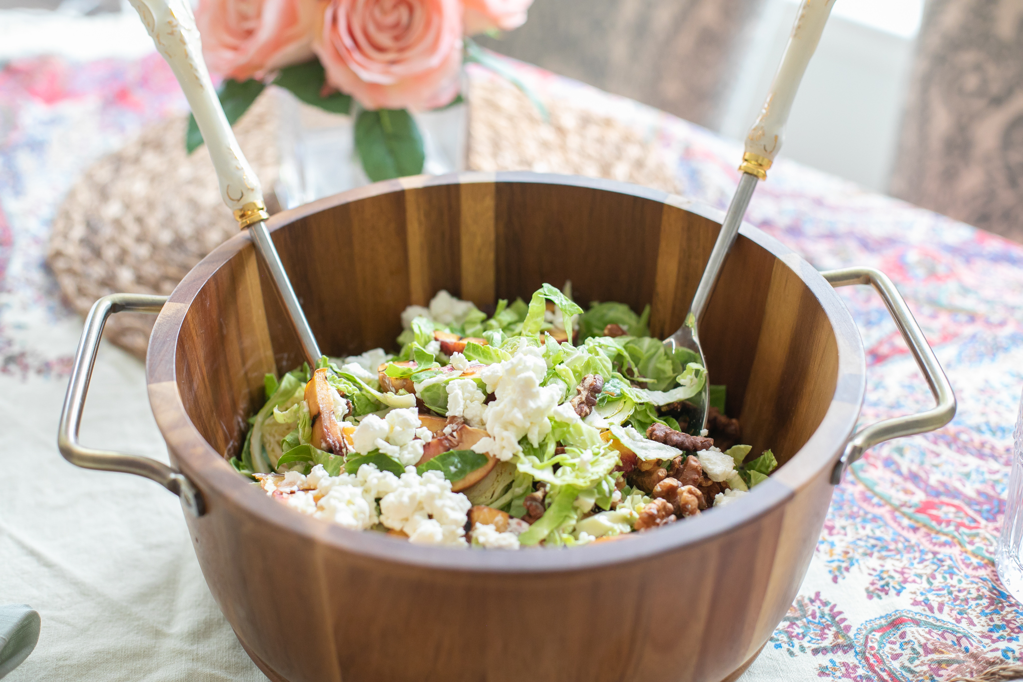 For example, if you want to swap the toasted walnuts out for candied or raw pecans, that would also be great. If you want to change the cheese from goat cheese to shaved parmesan, that would taste super yummy too! I had actually originally envisioned peaches in this recipe, but wasn’t able to find any so early in the season, so nectarines it became! I have to say though, I love how it turned out with the nectarines. But if peaches are more your style, swap in some grilled or roasted peaches! I also think adding avocado to this salad would be a nice addition.